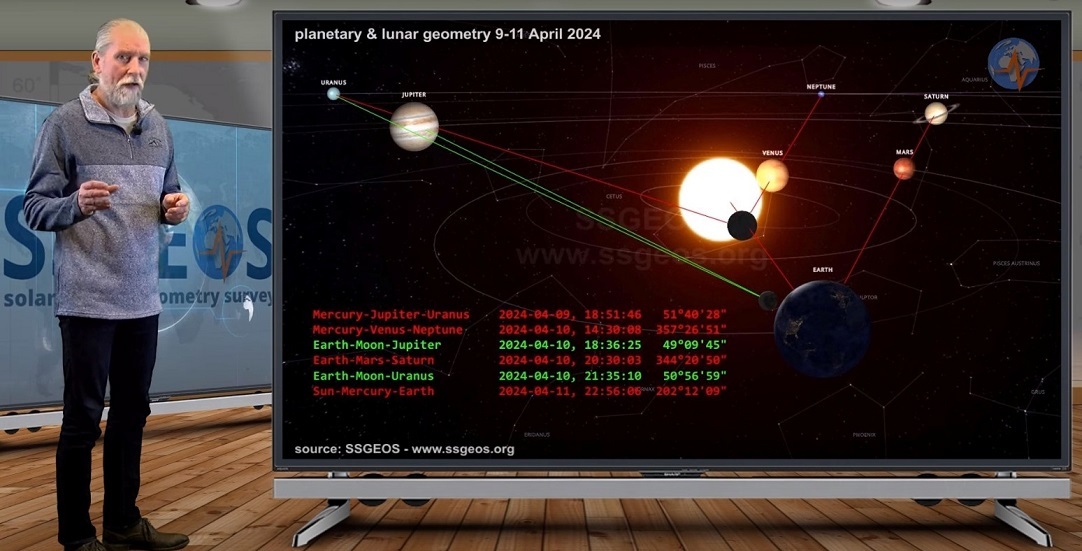 وذكر في تدوينة ثانية على صفحة معهد “SSGEOS” الذي يرأسه، أنه “يمكن أن يؤدي تقارب أربعة اقترانات كوكبية في الفترة من 9 إلى 11 أبريل إلى حدوث نشاط زلزالي كبير في الفترة من 11 إلى 13 أبريل تقريباً”.