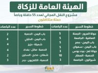 ونشرت هيئة الزكاة صورة كتابية توضح أماكن وقوف الباصات والحافلات التي قدمتها وخطوط سيرها ضمن المشروع التكافلي.