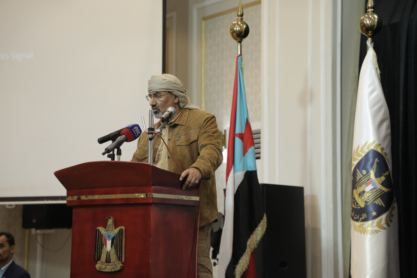 جاء ذلك خلال كلمة ألقاها عيدروس الزبيدي، خلال لقاء موسع لعدد من القيادات العسكرية التابعة للانتقالي وقيادات أخرى في ألوية العمالقة وقوات درع الوطن.