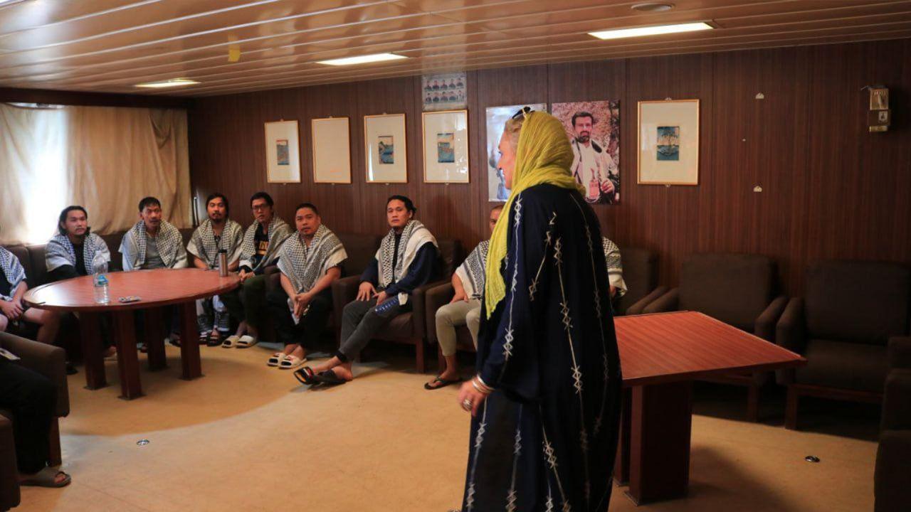 وبحسب الوكالة فإن “طاقم السفينة أكدوا لفريق الصليب الأحمر بأنهم يحظون برعاية وتعامل جيد ويتواصلون مع أسرهم عبر الفيديو، ويأملون إيقاف الحرب على غزة للإفراج عنهم”.