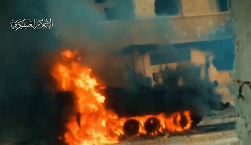 القسّام تستهدف ناقلة جند للإحتلال جنوب غزة موقعة إياهم بين قتيل وجريح