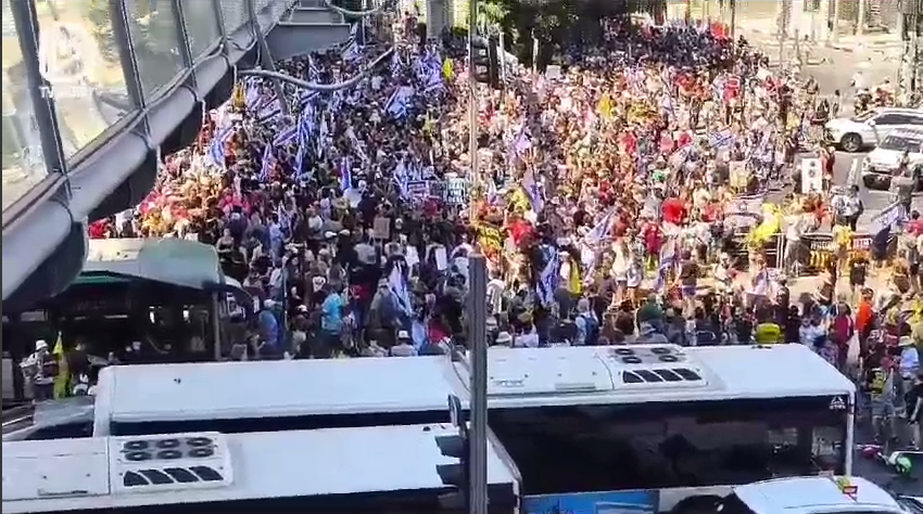 تظاهرة في “تل أبيب” وإغلاق تام للشوارع للضغط على نتنياهو لإبرام صفقة تبادل(فيديو)