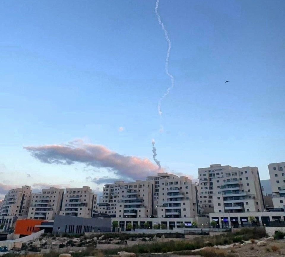 #شاهد | سقوط أجزاء من صاروخ اعتراضي كان يحاول اعتراض الصاروخ الذي أُطلق من #اليمن على محطة القطار الإسرائيلية، "باتي موديعين"، في وسط #فلسطين_المحتلة. #الميادين pic.twitter.com/eczyKZzy5D
