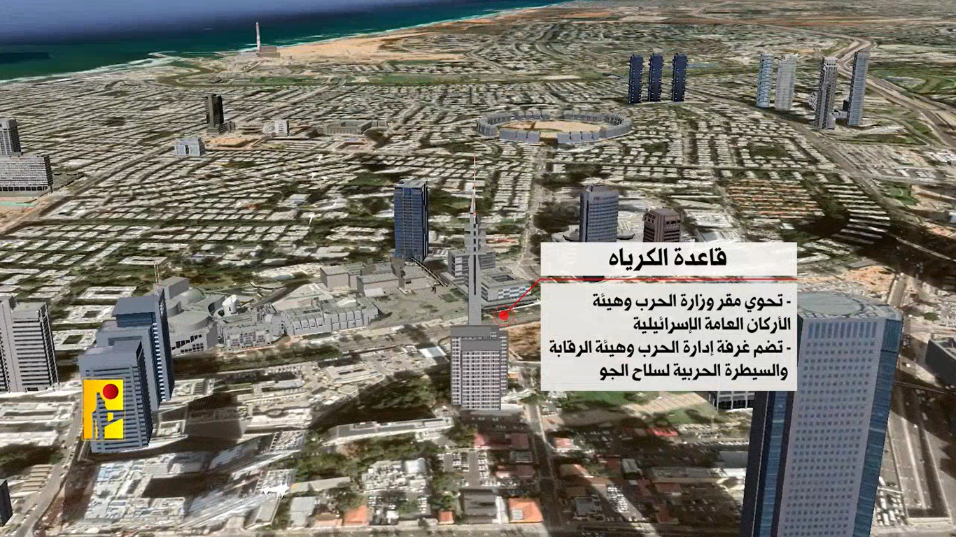 نشر الإعلام الحربي في المقاومة الإسلامية مشاهد تُظهر استهداف قاعدة “الكرياه” الواقعة في وسط تل أبيب (يافا المحتلة)، باستخدام مسيّرات انقضاضية نوعية وصواريخ “قادر 2”.