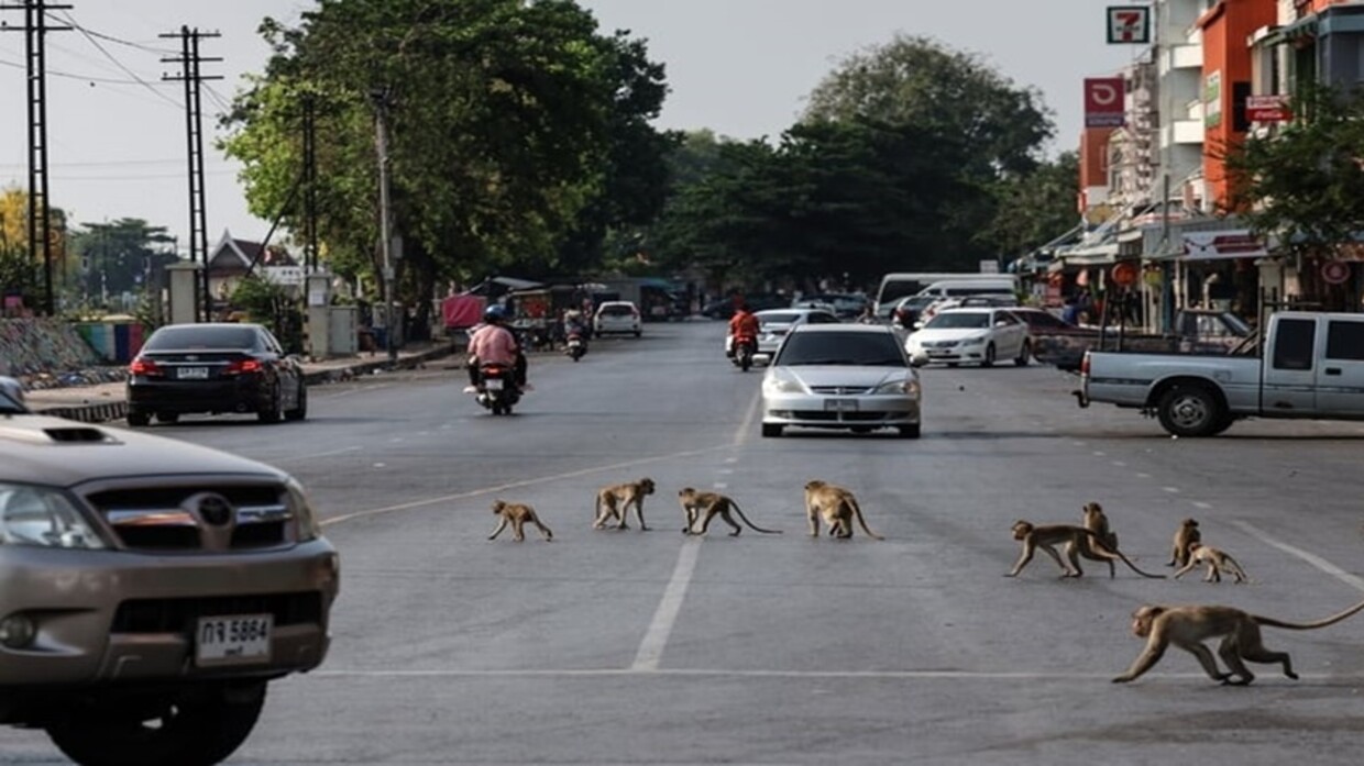 شاهد بالصور.. 200 قرد تهاجم بلدة في تايلاند