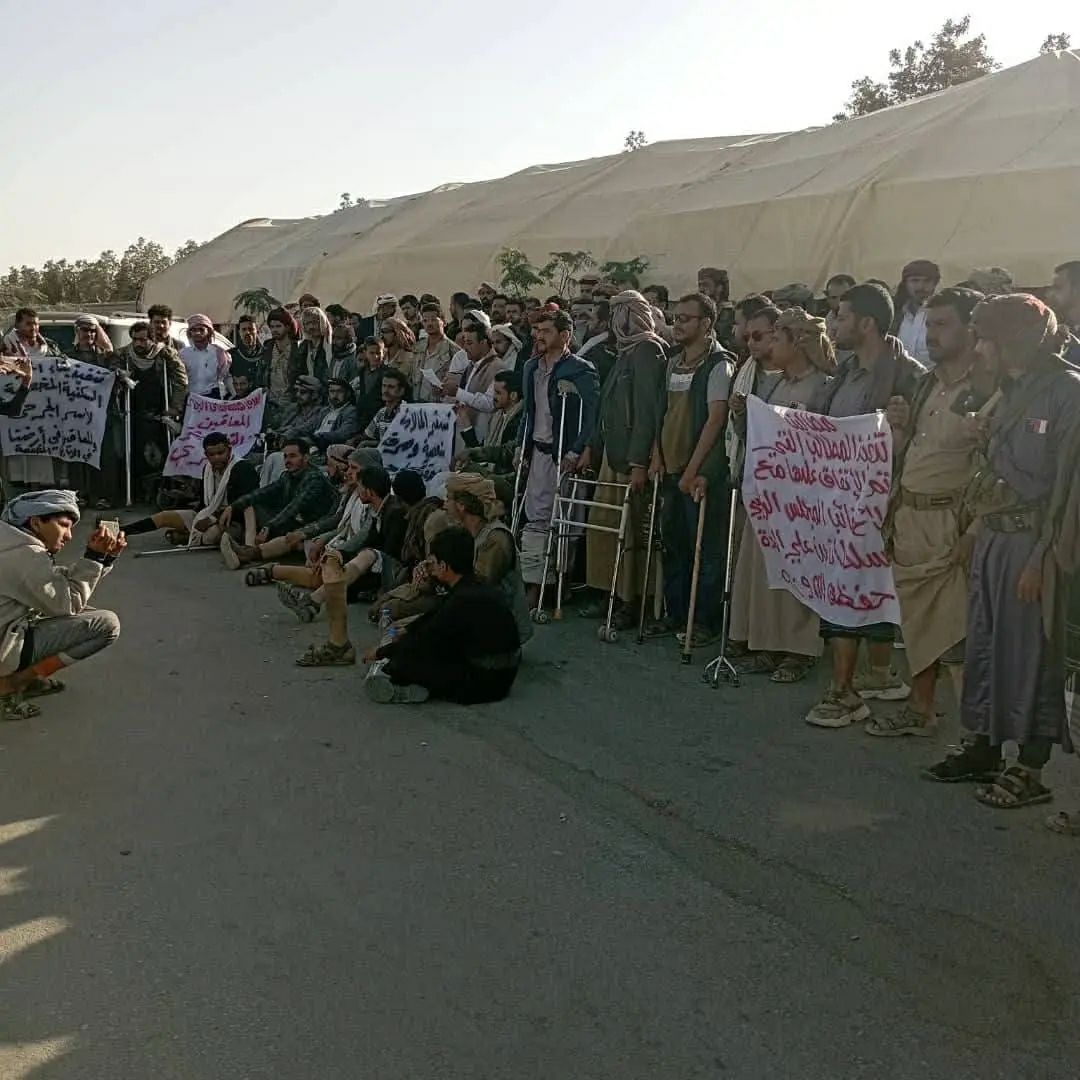 ويعتصم الجرحى من مقاتلي هذه الفصائل بمأرب، للمطالبة بحقوقهم، بعد رفض السلطة الموالية للتحالف علاجهم ودفع مرتباتهم.