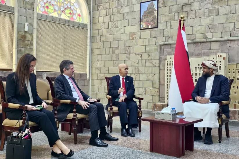 ووضع المحرمي علم اليمن على يمنية خلال لقاء جديد مع السفير الأمريكي لدى اليمن ستفن فاجن .