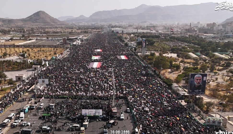 شهد ميدان السبعين بالعاصمة اليمنية صنعاء، اليوم، خروجاً مليونياً حاشداً تحت شعار “على الوعد مع غزة ضد التهجير، ضد كل المؤامرات”، في تأكيد واضح على ثبات الموقف اليمني الرافض للتهديدات الأمريكية الصهيونية باستئناف العدوان وتهجير الشعب الفلسطيني.
