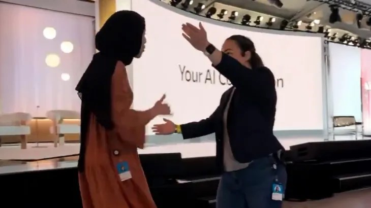 وخلال الكلمة، فاجأت الموظفة ابتهال أبو السعد، وهي مغربية الجنسية، الحضور بمداخلتها الغاضبة، وصرخت قائلة: “عار عليك”، مؤكدة تورط مايكروسوفت في دعم “الإبادة الجماعية” بحق الفلسطينيين، ما دفع سليمان إلى التوقف عن الحديث.