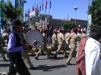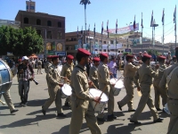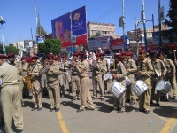 وقد جابت الفرقةُ الموسيقيةُ شوارعَ العاصمة انطلاقاً من بوابة الكلية الحربية ووصولاً إلَـى ميدان التحرير وعزفت عدداً من الألحان والأناشيد الحماسية والوصلات والمقطوعات الموسيقية وألحان الأناشيد الوطنية الخالدة التي أدتها بإتقان بديع.