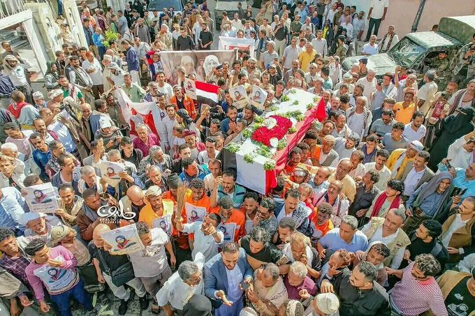 شيع في مدينة تعز، الثلاثاء، جثمان مديرة صندوق النظافة بعد أيام على مقتلها .. وشارك الالاف في مراسيم التشيع التي مرت من امام مقر صندوق النظافة ..