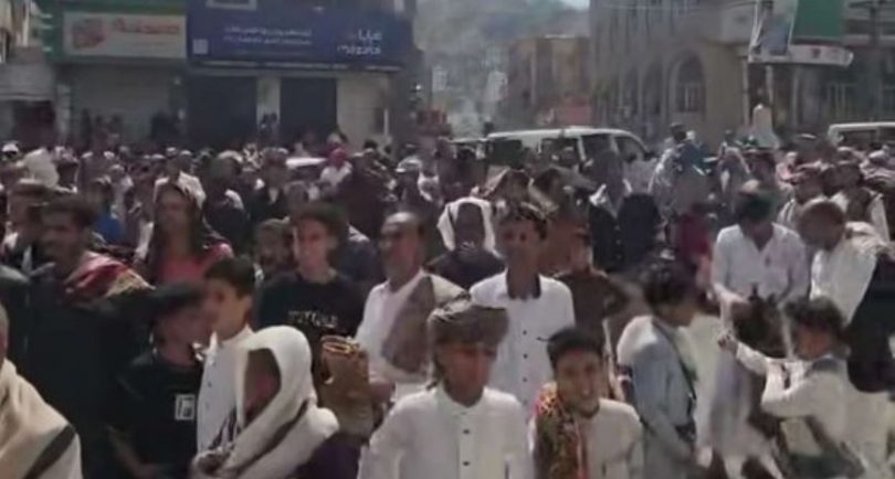 مظاهرة شعبية غاضبة بعد صلاة الجمعة في تعز تطالب بمحاسبة قتَلة “المشهري”