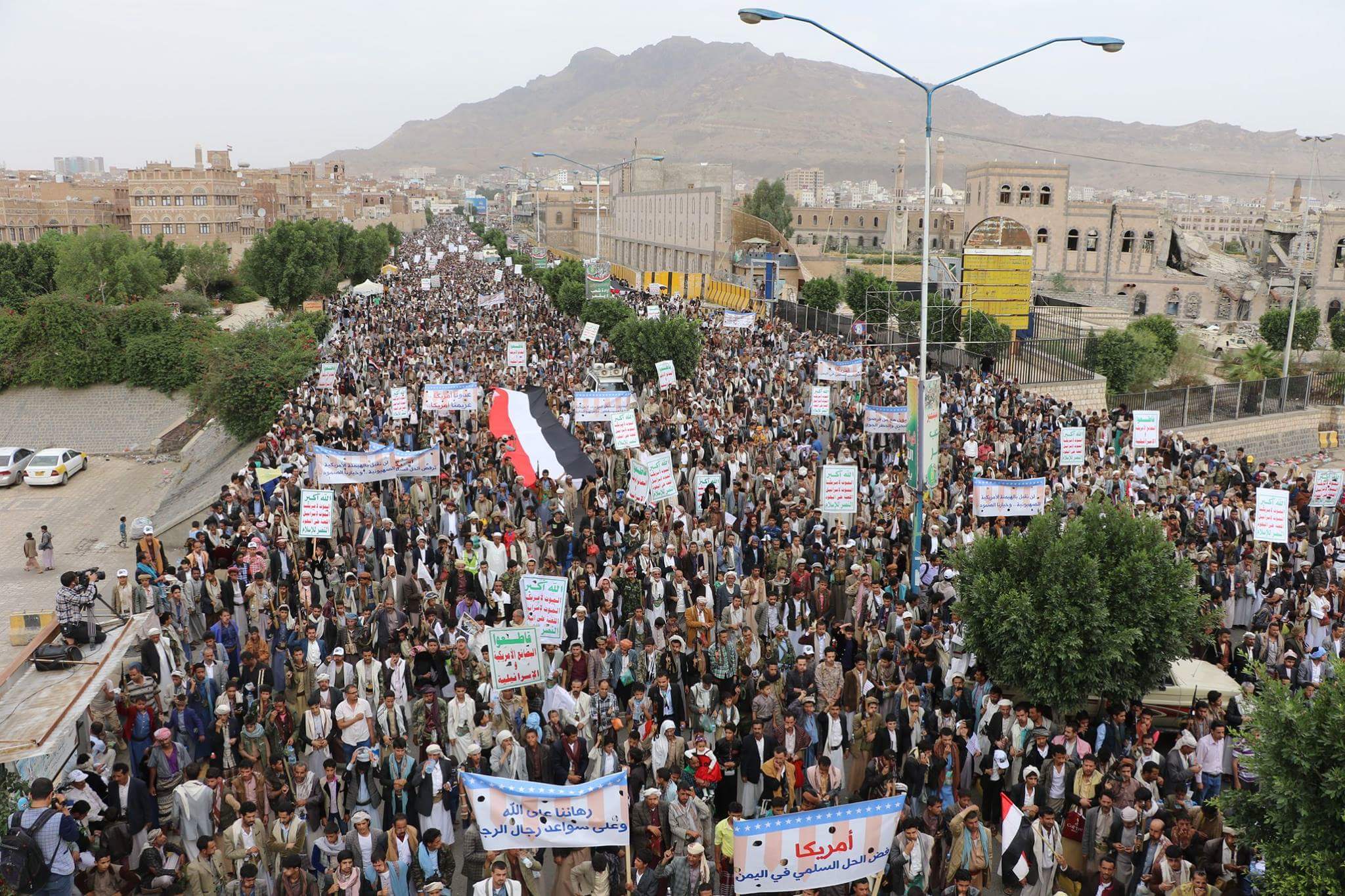 وفي بيان المسيرة الجماهيرية الحاشدة في باب اليمن، اكد ابناء الشعب اليمني ان التعنت الذي يقوده العدوان بقيادة امريكا في رفض كل الخيارات السلمية الهادفة الى حقن الدماء في اليمن وايقاف التدمير واحراق الحرث والنسل، وايصال اليمن الى الفشل والانهيار الاقتصادي.