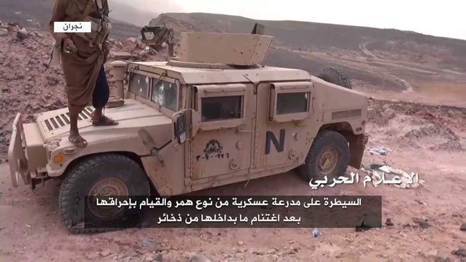 وتظهر المشاهد آلية عسكرية سعودية تنتظر الأفراد المنسحبين من الموقع المسيطر عليه واستهدافها لحظة تجمع الجنود حولها بصاروخ موجهن كما تظهر هروب جماعي للجنود السعوديين وحالة من الخوف والرعب تنتابهم والآلية العسكرية تلتهمها النيران.