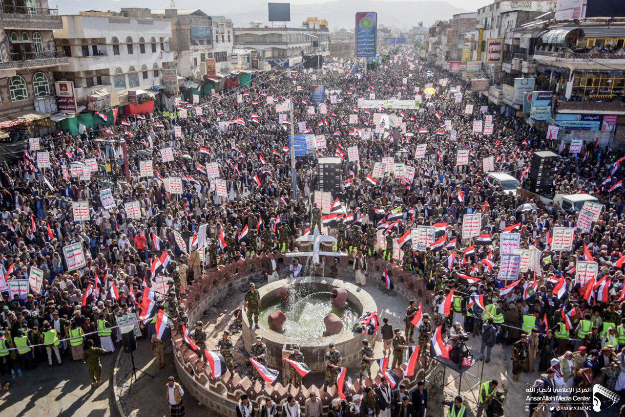 احتشد الآلاف من اليمنيين نهار اليوم السبت، في مسيرة جماهرية لإحياء ذكرى ما تطلق عليه صنعاء ثورة 21 سبتمبر.