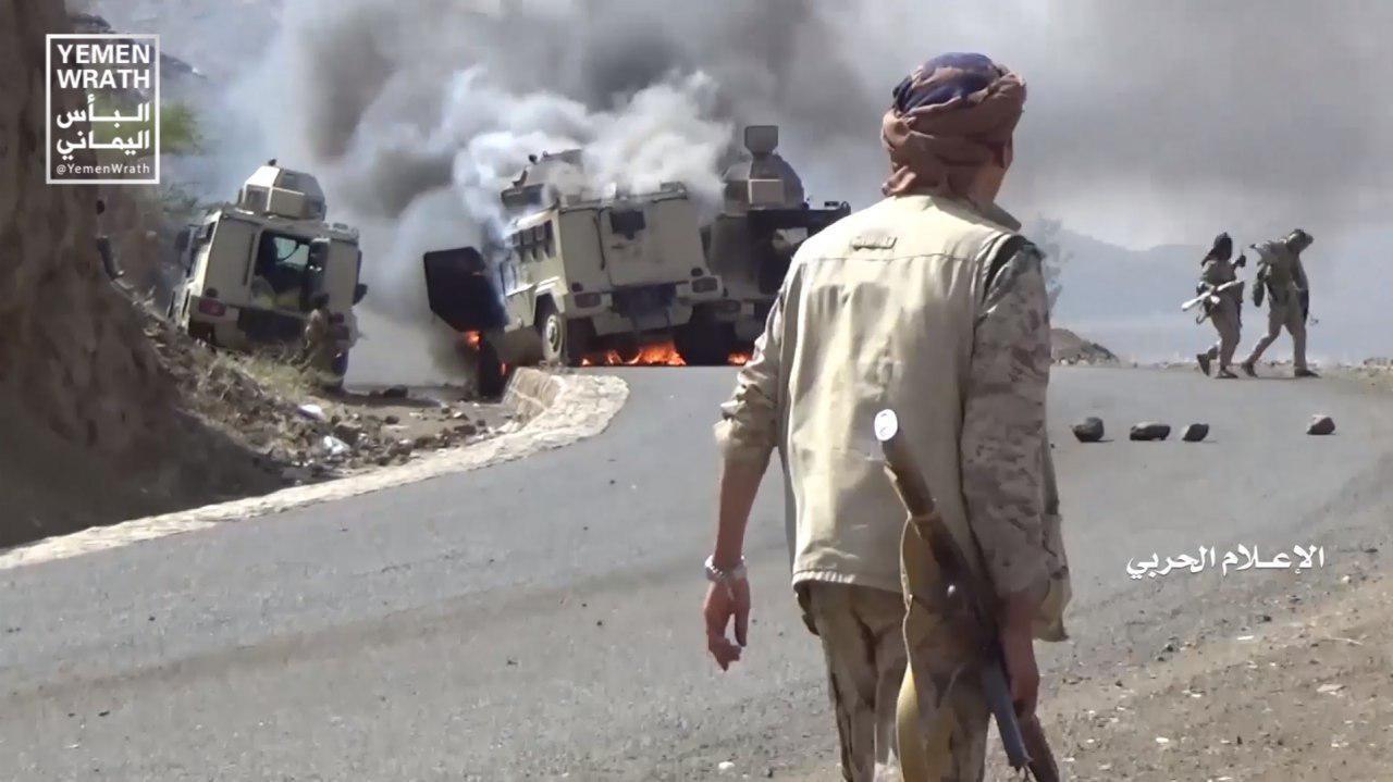 ووثقت المشاهد بعضا من الغنائم الحديثة والمتنوعة من السلاح والعشرات من الأطقم والأليات محملة بكامل معداتها وعتادها التي اغتنمها المقاتلون الحوثيون في المواقع، كما رصدت المشاهد عدد من الجرحى وعشرات الجثث المرمية التي خلفتها طيران التحالف لمن تراجع منهم أو يريد الاستسلام.