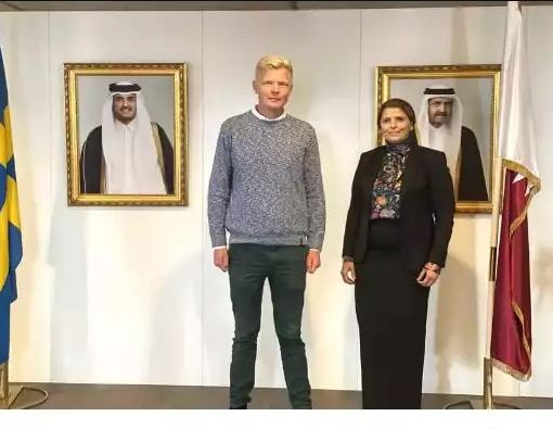 وبدأ جرودنبرغ جولته المتوقعة في المنطقة بلقاء مع سفيرة دولة قطر في السويد، موزة بنت ناصر ال ثاني.