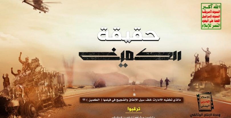 رد الحوثيون على الفيلم الإماراتي ” الكمين ” بفيلم يوثق لقطات من ارض المعركة للمواجهات مع قوات إماراتية .