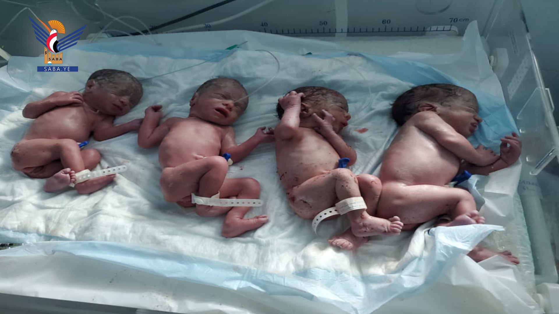 انجبت امرأة يمنية في العقد الثالث من عمرها، اليوم الأثنين، أربعة توأم بعملية قيصرية في مستشفى السبعين للأمومة والطفولة في العاصمة صنعاء.