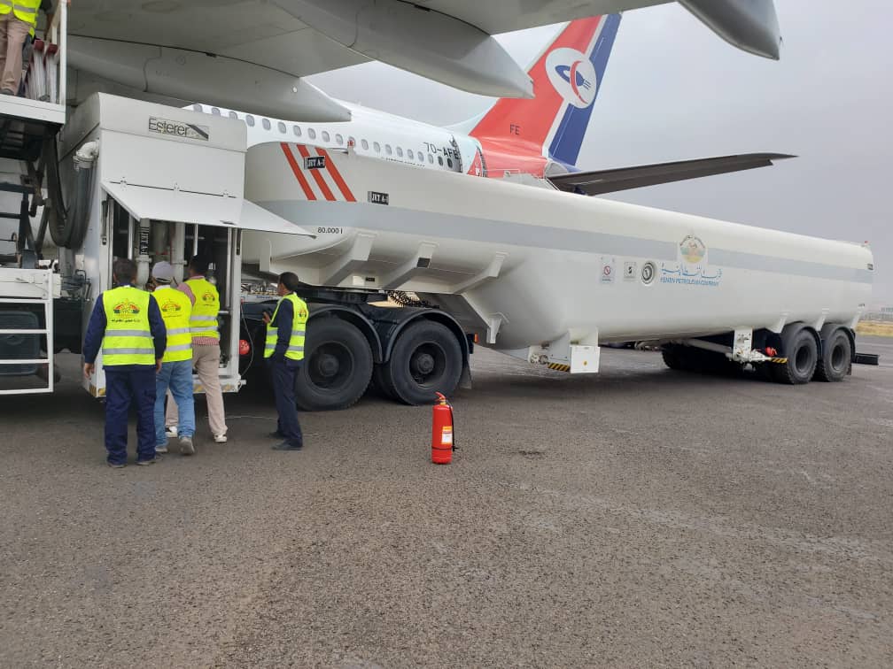 لاول مرة منذ بداية العدوان يتم تزويد طيران اليمنية بوقود الطيران من مطار صنعاء الدولي