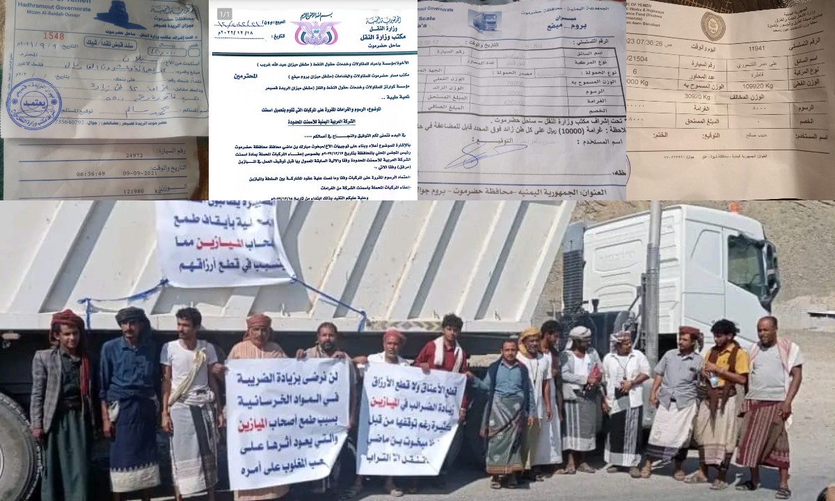 وحسب سائقي مركبات نقل الأحجار والجبس والخرسانة، الذين قابلهم المحقق الاستقصائي، فإن ميزان مديرية بروم وميفع، الواقع في منطقة (حرو) غرب مدينة المكلا، فرض جبايات مقدرة بحوالي 400 ألف ريال على كل قاطرة.