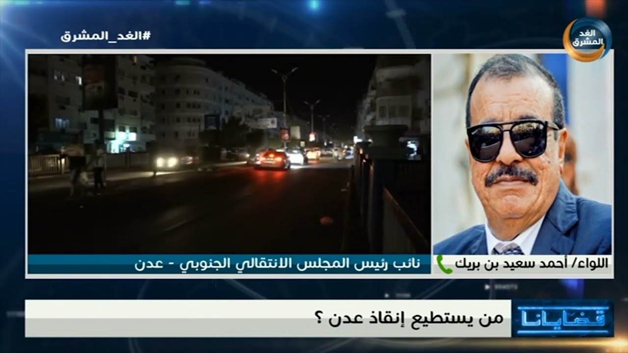وقال اللواء أحمد سعيد بن بريك، وهو رئيس الجمعية الوطنية للمجلس الإنتقالي، في مداخلة مع قناة “الغد المشرق”، إن عدن تعاني من فشل الحكومة ووزرائها الغير كفؤين، وطالب من هذه الحكومة التي أشرف على تشكيلها التحالف بقيادة السعودية والإمارات بتقديم استقالتها وتعيين حكومة تكنوقراط جديدة.