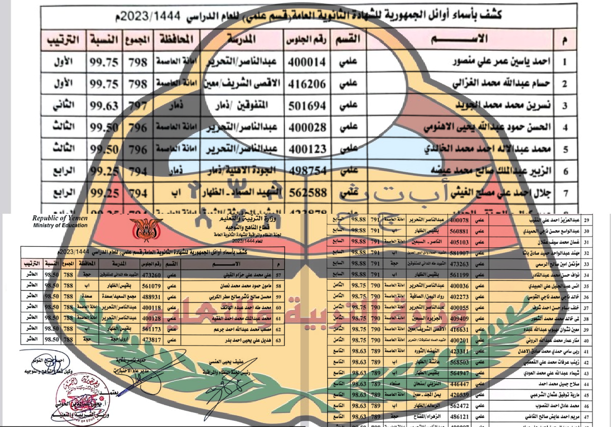 *مرفق كشف بأسماء الأوائل: