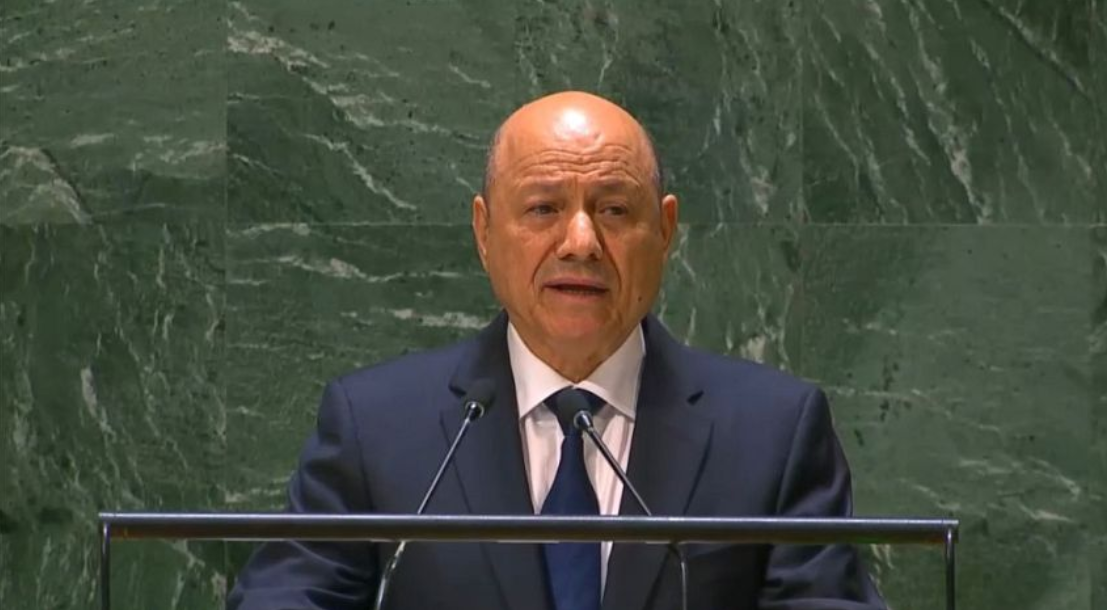 وفي تلميح واضح إلى رغبة السلطة الشكلية التي أتى بها التحالف السعودي، للعودة لدعمها مالياً وعسكرياً من الخارج من أجل مواصلة الحرب، قال العليمي في كلمته أمام الجمعية العامة للأمم المتحدة، الخميس، إن “الطريق متاح لتحقيق السلام من خلال استعادة الثقة بالحكومة الشرعية” حسب تعبيره، الأمر الذي يعني أن السلام من وجهة نظر أدوات التحالف السعودي – المستفيدة من استمرار الحرب – لن يكون عن طريق الاتفاق مع صنعاء بل عن طريق إعادة دعم حكومة التحالف عسكرياً من أجل عودة الحرب واستمرار تدخل التحالف عسكرياً لإظهار حكومة التحالف بصورة أفضل مما هي عليه الآن وهو ما يقصد به العليمي في عبارته “استعادة الثقة بالحكومة الشرعية”.