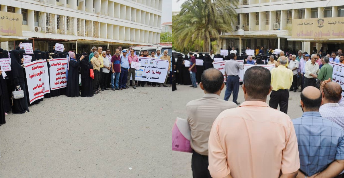 أكاديميو جامعات “عدن ولحج وأبين وشبوة” يحتجون للمطالبة بصرف حقوقهم ورفع المرتبات