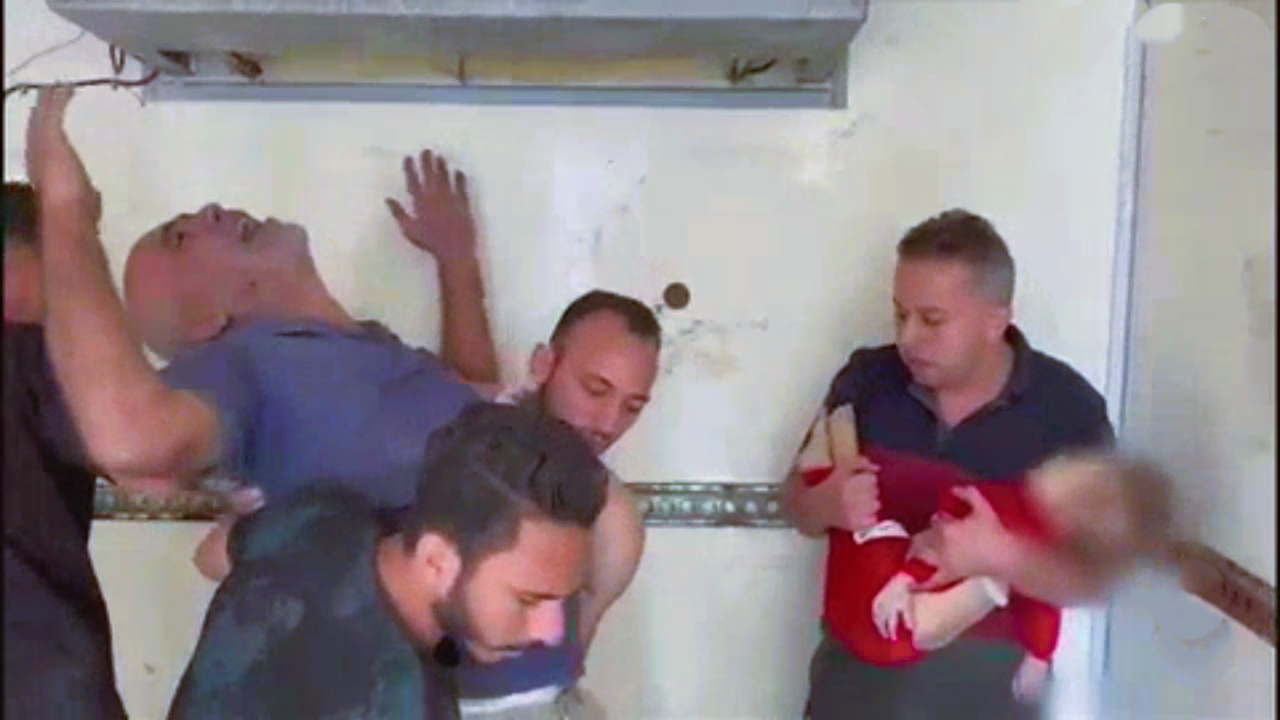 انهار رجل فلسطيني أمام جثة ابنه الشهيد وحفيداته الأربع، الذين استشهدوا بقصف الاحتلال الإسرائيلي لحي الشجاعية بقطاع غزة.