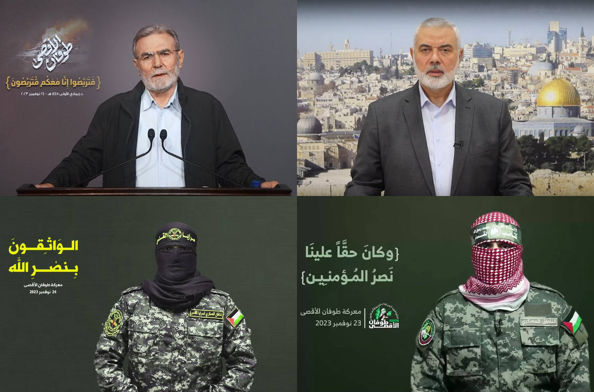 بدوره، توجه رئيس المكتب السياسي لحركة “حماس” إسماعيل هنية، بالتزامن مع بداية مفاعيل الهدنة المؤقتة في غزة، بالتحية إلى المقاومة في كل من لبنان والعراق واليمن قائلاً “نحيي صمود المقاومة في لبنان التي تخوض معارك على طول الحدود، وإخواننا في اليمن الذين يردون بطريقتهم على العدو، كما نوجه التحية للمقاومة العراقية التي تشارك في المعركة برجولة وشهامة”.