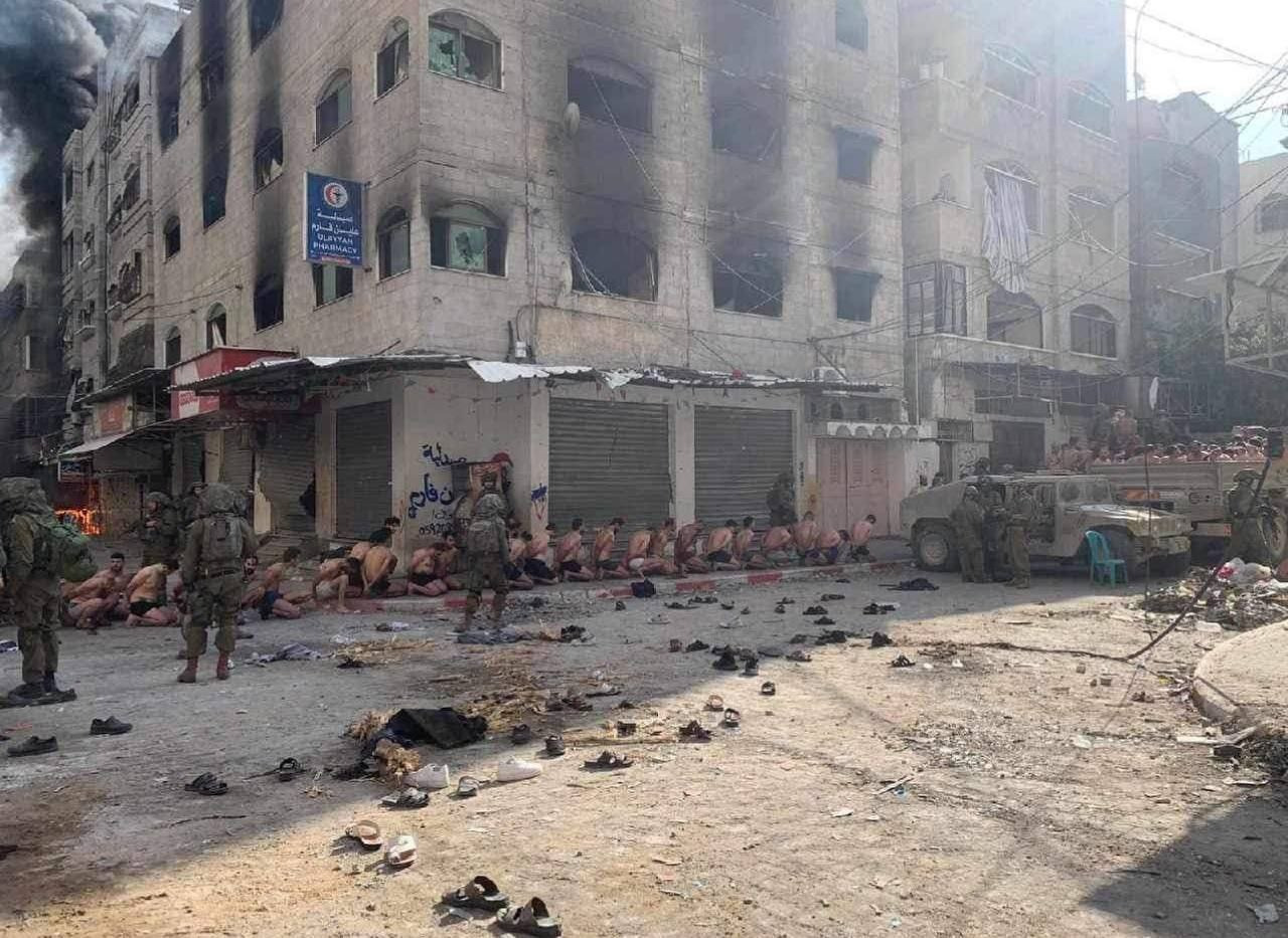 وانتشرت صوراً سابقاً، تظهر عشرات الرجال الفلسطينيين الذين تم اعتقالهم في مدينة بيت لاهيا شمال غزة، وقد تم تجريدهم من ملابسهم الداخلية، راكعين أو جالسين منحنيين، ثم عصبت أعينهم، ووضعوا في شاحنات عسكرية إسرائيلية.