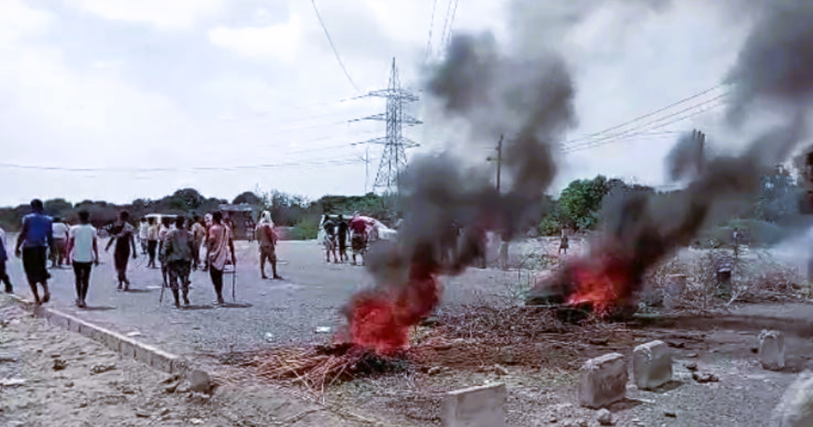 وأضرم المحتجون النار في الإطارات التالفة ونصبوا حواجز بالاحجار وسط الطريق.