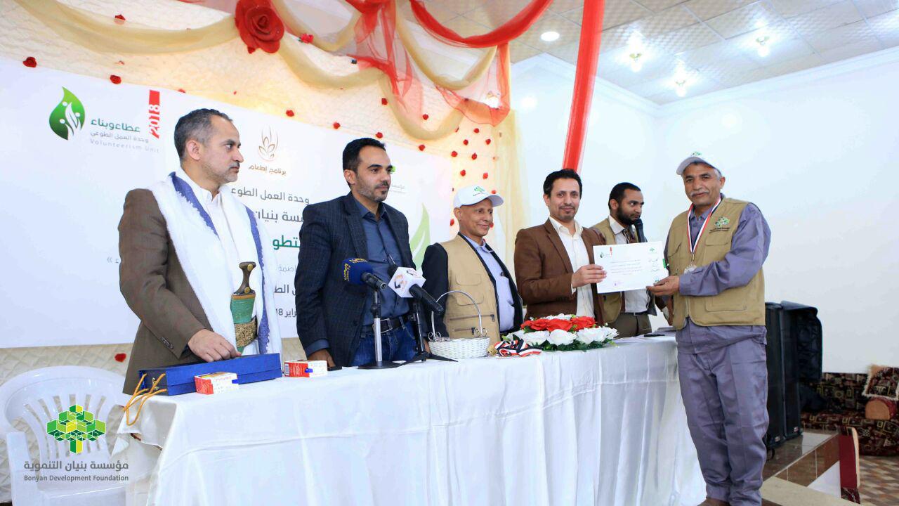 صنعاء | مؤسسة بنيان التنموية تكرم 160 متطوعا في برنامج إطعام